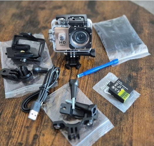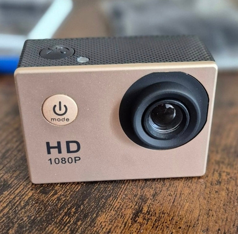 1080P HD champagnefärg actionkamera med Tillbehör – För alla dina äventyr