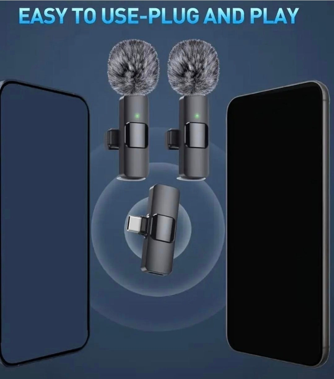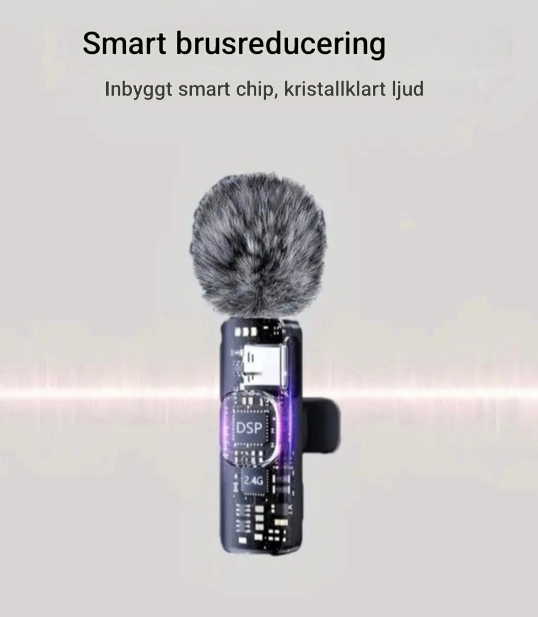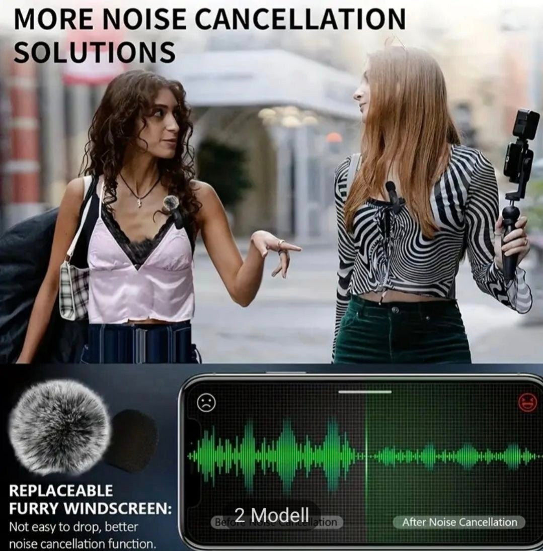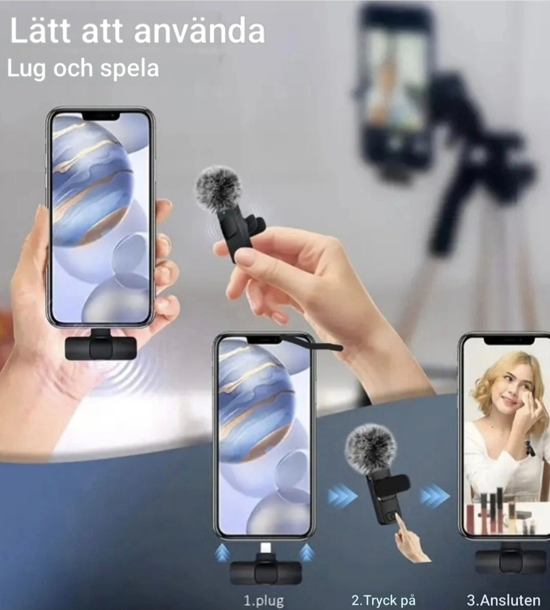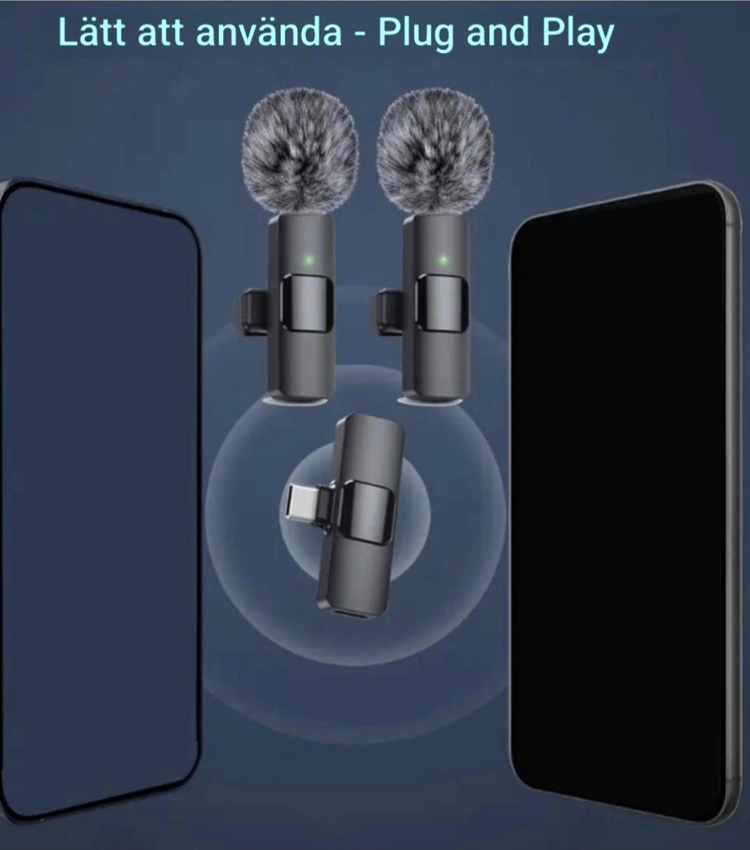 Trådlös lavaller mikrofon med brusreducering. Perfekt för online undervisning, livestreaming, videoinspelning och intervjuer. Enkel att använda, bara att plugga in och spela in. Kommer med två mikrofoner och en mottagare.