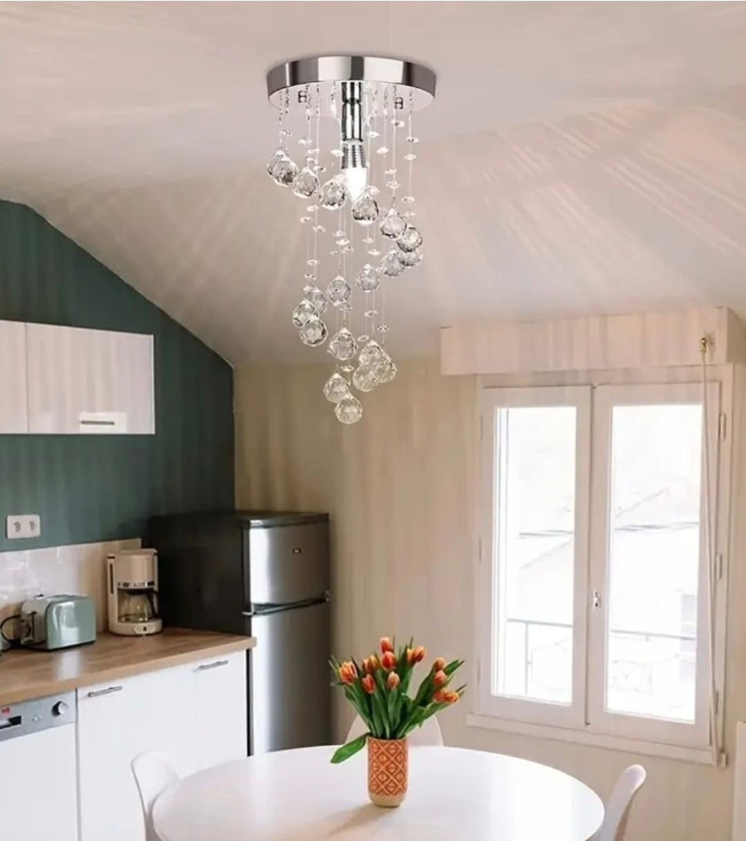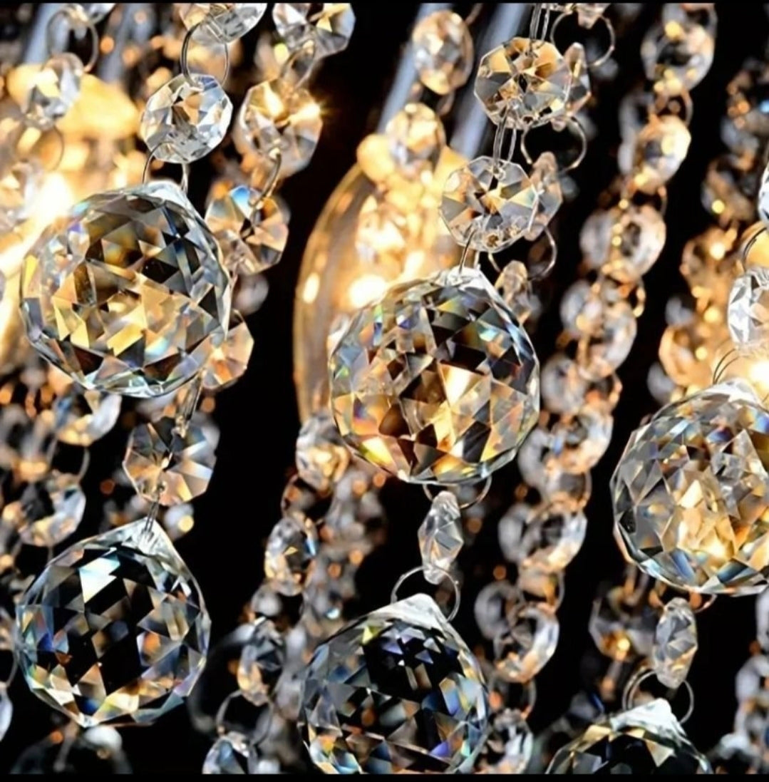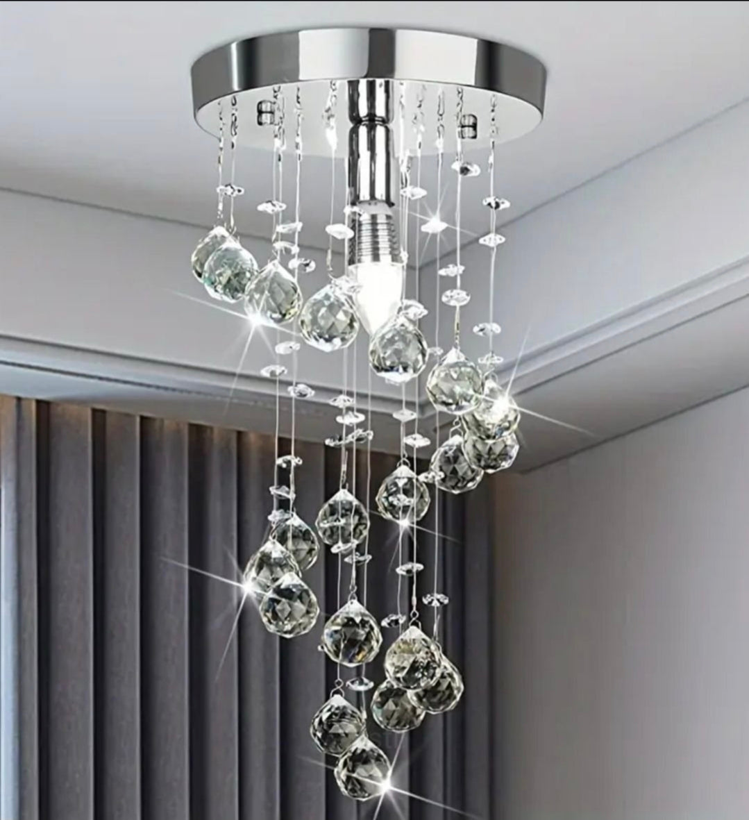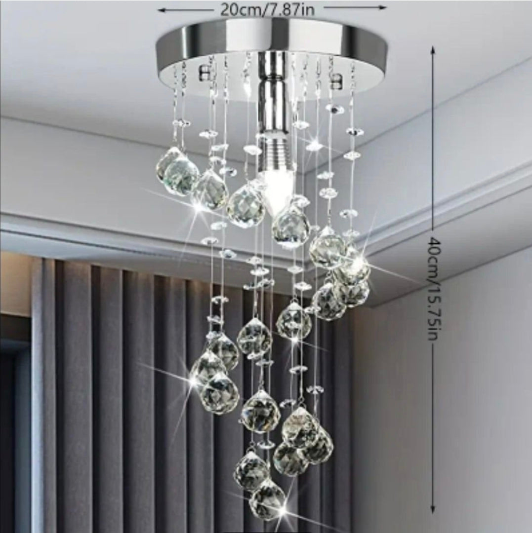 Förvandla ditt rum med denna eleganta taklampa med skimrande kristalldetaljer som fångar och reflekterar ljuset på ett fantastiskt sätt. Perfekt för att skapa en lyxig och glittrande atmosfär i vardagsrum, sovrum, hall eller matsal.